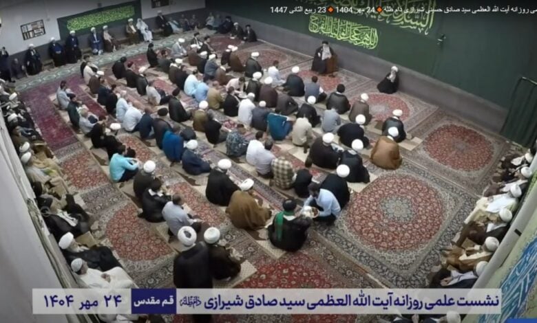 نشست علمی روزانه آیتاللهالعظمی سید صادق حسینی شیرازی، روز پنج شنبه بیست و سوم ربیع الثانی سال 1447 برگزار شد.