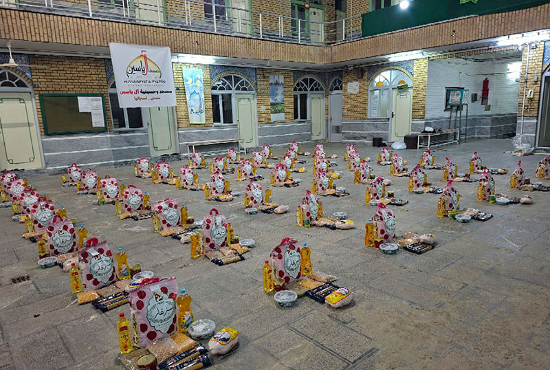 اجرای طرح اهدای سبد غذایی رمضانی به خانواده های ایتام و نیازمند در شهر تهران ازسوی مسجد و حسینیه آل یاسین
