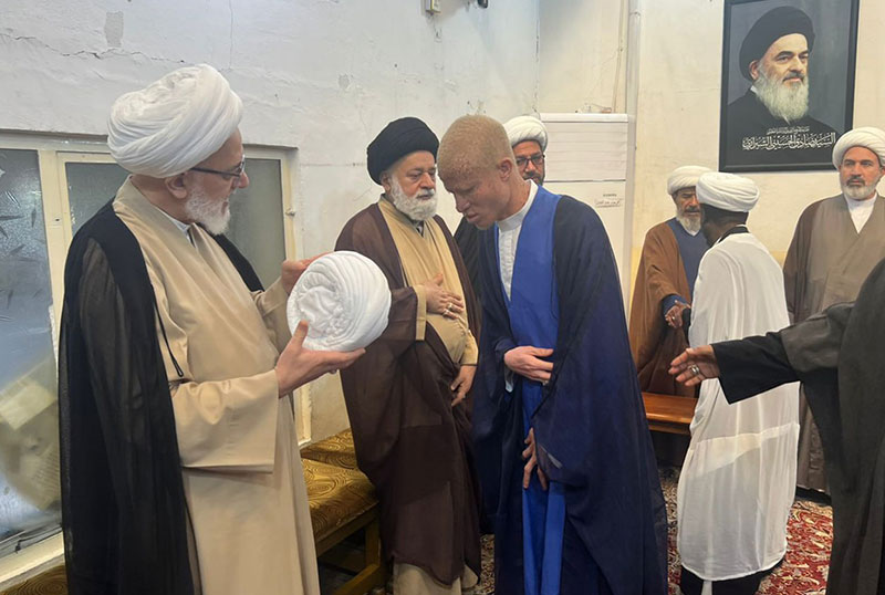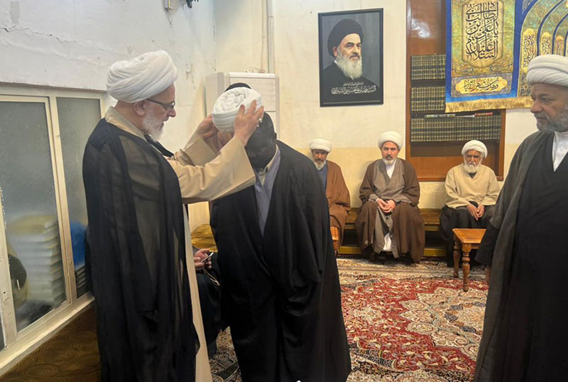 تشرف طلاب علوم دینی نیجریه به لباس روحانیت در دفتر آیت الله العظمی شیرازی در شهر مقدس کربلا