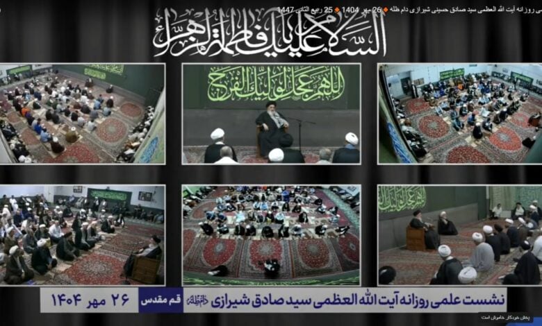 نشست علمی روزانه آیتاللهالعظمی سید صادق حسینی شیرازی، روز شنبه بیست و پنجم ربیع الثانی سال 1447 برگزار شد.