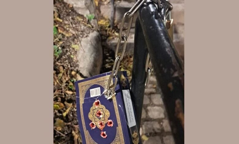 به گزارش رویترز، در این اقدام اخیر، نسخهای از قرآن کریم که با زنجیر به نردههای ورودی مسجد بزرگ استکهلم بسته شده بود، شش اثر گلوله داشت و بر روی آن پیامی تهدیدآمیز به دو زبان عربی و سوئدی نصب شده بود که مسلمانان را هدف قرار میداد و قصد ترساندن جامعه اسلامی را داشت.