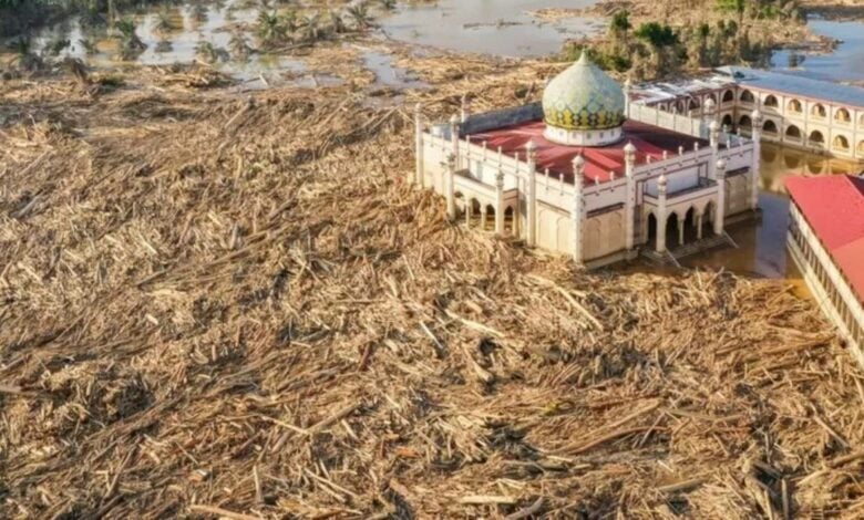 سیل ویرانگر در جزیره سوماترای اندونزی با ریشهکن کردن هزاران درخت، مانع رسیدن نمازگزاران به مسجد شد و زندگی روزمره را مختل کرد.