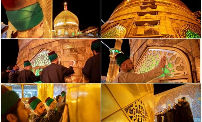 Seyyidüşşüheda’nın mübarek türbesinin hizmetkârları, düzenlenen bir törenle Eba Abdullah Hüseyin’in (a.s) mübarek türbesinin kubbesini temizlediler.
