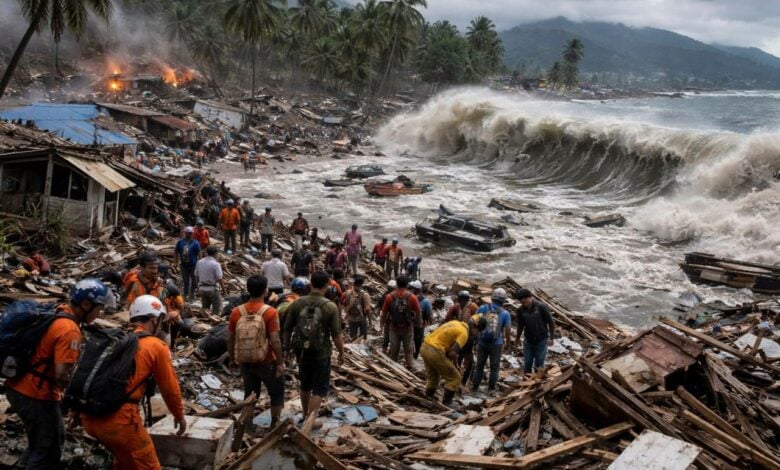 Endonezya’daki Şiddetli Deprem Nedeniyle Binalarda Hasar ve Can Kayıplarıyla Birlikte Tsunami Dalgaları Oluştu