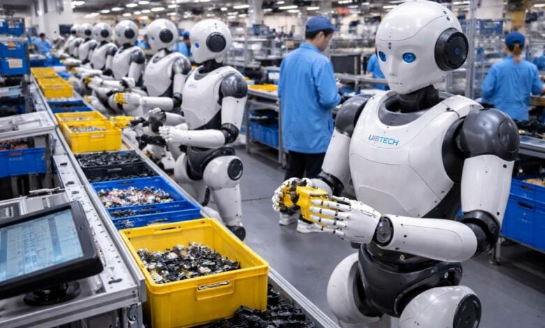 Çin’in Guangxi bölgesindeki bir fabrikada, insansı endüstriyel robotlar stajyer olarak görevlerine başlamış ve parça sınıflandırma ile malzeme taşıma gibi görevler üstlenmiştir.