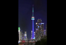 کنیڈا کے شہر ٹورنٹو میں سی این ٹاور کو سبز روشنیوں سے منور کیا گیا…