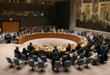 Members of the United Nations Security Council sit during a meeting on…
