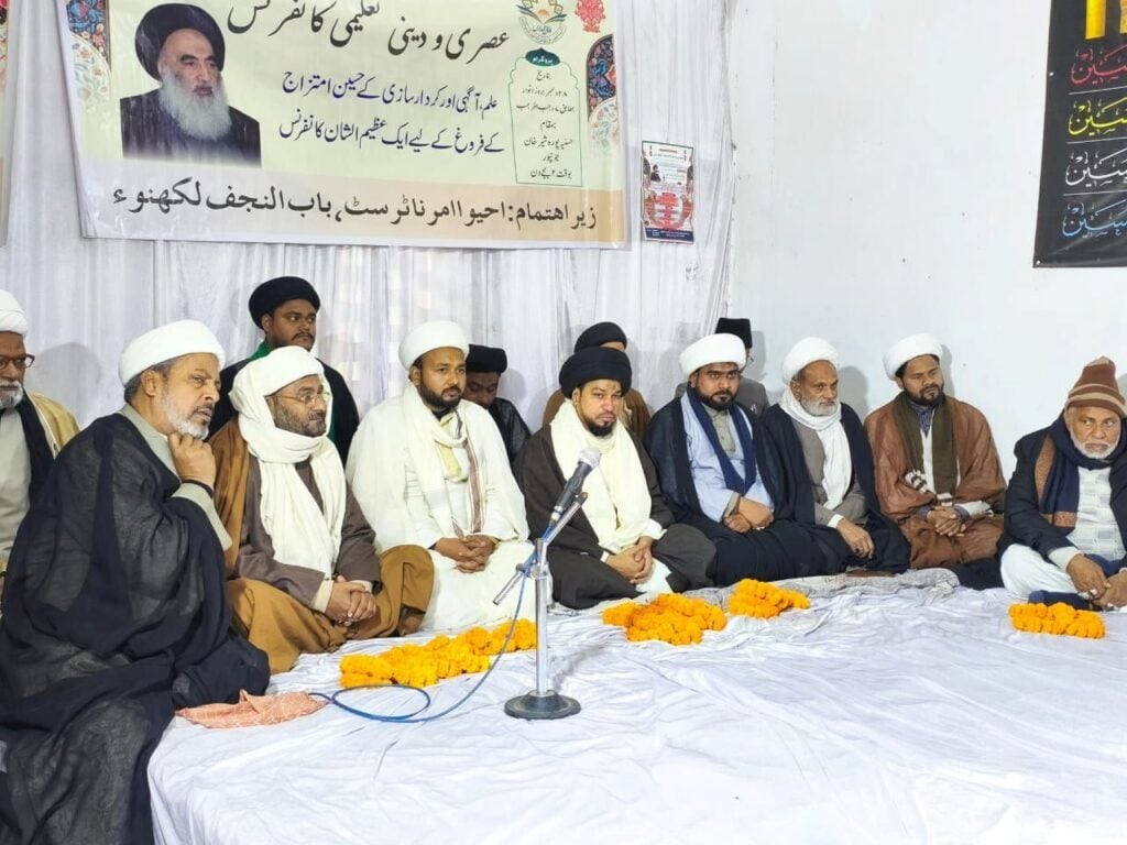 رنوں / جونپور۔ احیوا امرنا ٹرسٹ باب النجف لکھنو کے زیر اہتمام، مومنین رنوں کی جانب سے 28 دسمبر 2025 بروز اتوار دن میں 2 بجے حسینیہ پورہ شیر خان رنوں میں آیۃ اللہ العظمیٰ سید علی حسینی سیستانی دام ظلہ کے نمایندہ حجۃ الاسلام والمسلمین مولانا سید اشرف علی الغروی صاحب قبلہ کے زیر صدارت "عصری و دینی تعلیمی کانفرنس” منعقد ہوئی۔