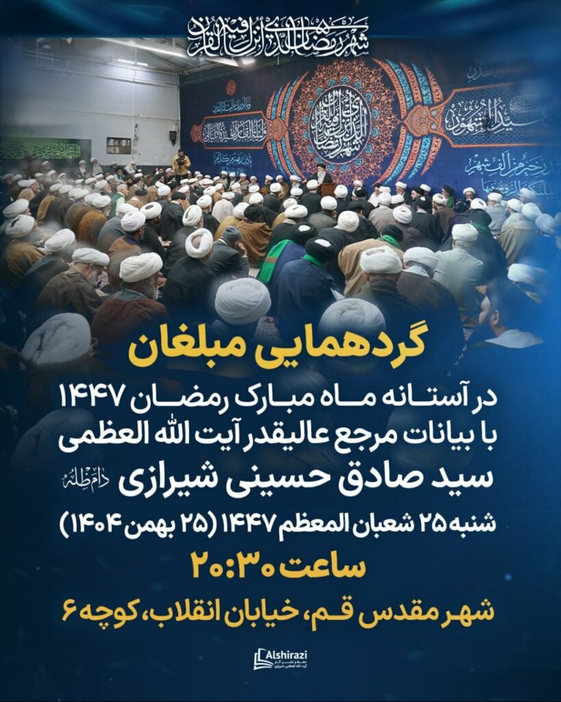 استقبال ماہِ مبارک رمضان ۱۴۴۷ میں مبلغین کا اجتماع، جسمیں آیۃ اللہ العظمیٰ شیرازی کا خطاب