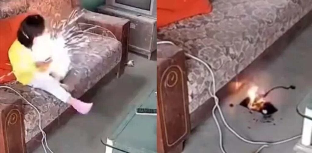 وائرل ویڈیو میں دیکھا جا سکتا ہے کہ بچی صوفے پر بیٹھی فون استعمال کر رہی تھی اور فون چارجر سے منسلک تھا۔ اچانک فون پھٹنے سے بچی خوفزدہ ہو کر صوفے سے نیچے گر گئی، تاہم خوش قسمتی سے اسے کوئی بڑی جسمانی چوٹ نہیں آئی۔