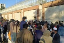 افغان شہریوں کا ایران کے قونصل خانے کے سامنے ورک ویزا کے…