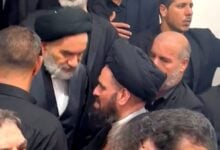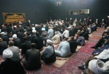 آیۃ اللہ العظمیٰ سید صادق حسینی شیرازی کے فرزند کی آیۃ اللہ العظمیٰ سیستانی کی اہلیہ کی مجلس ترحیم میں شرکت