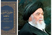 آیۃ اللہ العظمیٰ سید صادق حسینی شیرازی کے فرزند کی آیۃ اللہ العظمیٰ سیستانی کی اہلیہ کی مجلس ترحیم میں شرکت