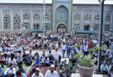ہلمند صوبہ میں لشکرگاہ کی جامع مسجد جعفری میں روزہ دار شیعہ مسلمانوں کی نمازِ جمعہ